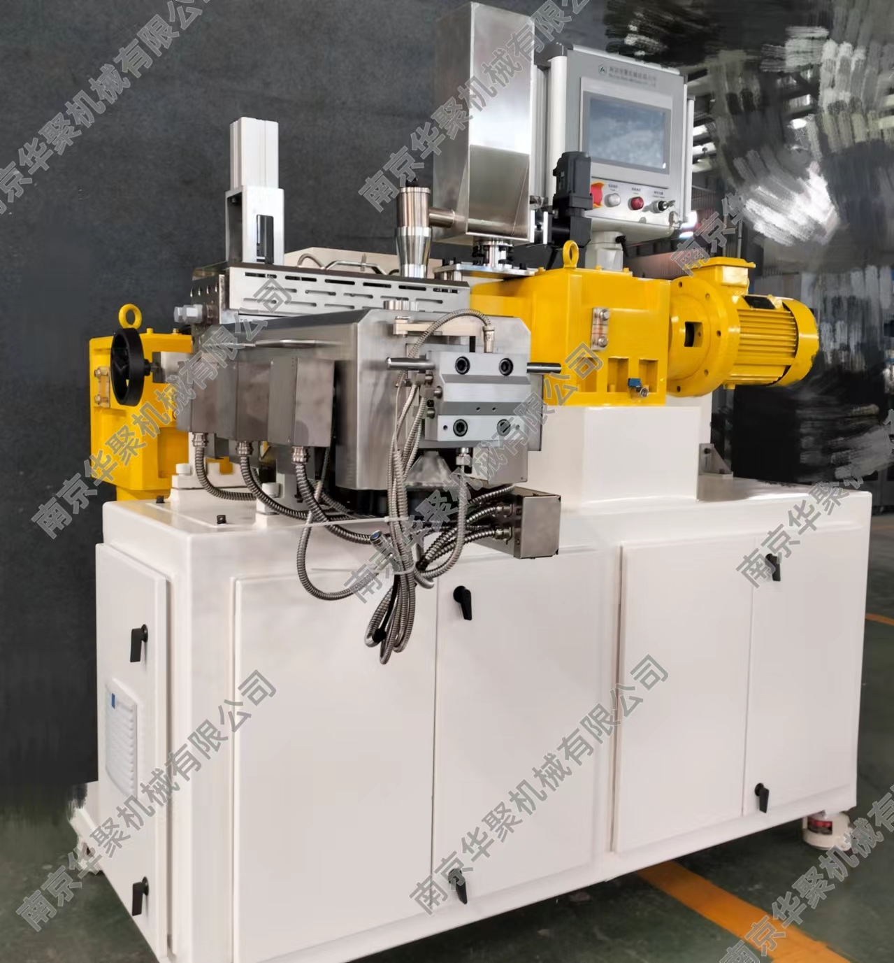 1、占地面積小,主機(jī)長寬高為1600X1350X1650mm,帶有移動腳輪。 2、集成連續(xù)密煉與雙螺桿的優(yōu)勢特點,連續(xù)式擠出,方便各種研發(fā)測試使用。 3、能耗低,裝機(jī)裝機(jī)功率22KW,實際操作功耗更低,類似一臺中央空調(diào)功率。 4、產(chǎn)量范圍1-10Kg/h,方便少量物料測試,伺服電機(jī)喂料驅(qū)動更穩(wěn)定精確。 5、一體化設(shè)計,電控冷卻系統(tǒng)全部集成,無需額外安裝,接電即用。 6、連續(xù)密煉機(jī)可翻轉(zhuǎn)腔體和雙螺桿快開機(jī)頭設(shè)計,方便清理及檢查維護(hù)。 7、全系統(tǒng)安全連鎖,觸摸屏操作,多處安全停機(jī)保護(hù),使用更放心。 8、整機(jī)1噸,方便裝卸。